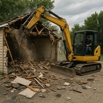 We offer a full-service package for your small demolition needs. Whether it be tearing down a detached garage/shed, old deck, swimming pool, or tearing out a driveway or sidewalk. We provide the equipment, the labor, the dumpster, and the hauling away; all in one price.